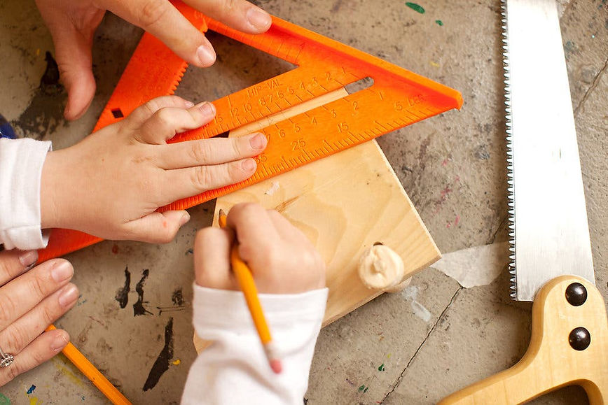 A turma é apresentada aos laboratórios e ferramentas. Estímulo ao processo de criação com imagens e possibilidades de projetos, desenhos, cenários, maquetes, esculturas e invenções. Primeiro contato com a madeira através de gravetos e experimentação de técnicas tradicionais como amarrações, cola, tensão, texturas, cores, proporção, escala, etc.... Além de conversas relacionadas.